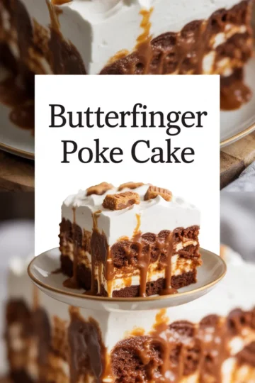 I’m obsessed with this Butterfinger poke cake because it wrecks every boring dessert table. Chocolate cake soaked until it’s ridiculous, rivers of